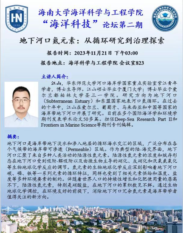 jinnianhui金年会官网海洋科学与工程学院“海洋科技”论坛第二期