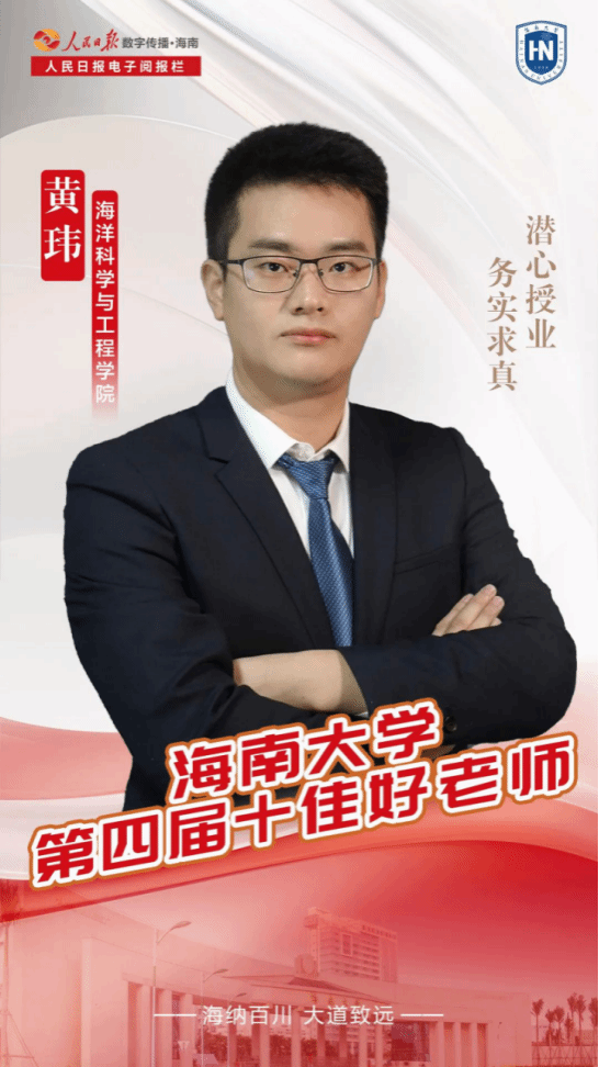 黄玮老师还特别注重学生的全面发展,如2020级吴瑞宝同学获香港科技大学(广州)全额奖学金,并获“中美青年创客大赛”海口分赛区决赛二等奖(指导教师:黄玮),第十一届“挑战杯”海南省大学生课外学术科技作品竞赛三等奖(指导教师:黄玮)。注重研究生高水平成果发表。已毕业6名研究生均发表一区高分SCI论文,其中5名同学考取985和211学校攻读博士学位;2019级李成成同学荣获jinnianhui金年会官网“优秀毕业生”荣誉称号,并留校攻读博士学位,2020级吴鑫涛同学考取西安交通大学攻读博士学位,2021级钟雅洁同学留校硕博连读;组内同学们饱满的深造和留校热情体现了良好的立德树人成效。