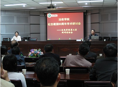 10月16日下午,法政学院在我校第三会议室举办纪念新中国成立60周年学术研讨会暨法政学院第二届科研研讨会。校党委副书记汪庆华、副院长马超、工会主席杨德岭,院长助理、科研处处长杨风岭,学报编辑部主任孟聚、工会副主席翟慧婷,党委宣传部副部长王林等出席此次研讨会。研讨会由法政学院副院长崔秀花主持。