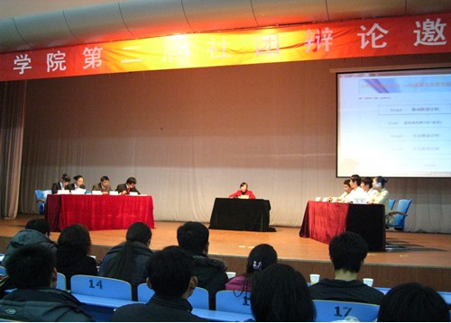 此次决赛邀请到党委组织部王炎老师、党委宣传部钟卫平老师、校团委李立夏老师、法政学院党总支副书记程曾强老师、经管学院团总支副书记王旭光老师、计算机科学学院李自豪老师和美术学院古桂琴老师担任评委,还邀请到法政学院团总支副书记黄春建老师、09级辅导员许建峰老师、校社团联合会主席涂潇潇和副主席王懋翔担任赛场嘉宾。比赛分为两个阶段三场赛事,第一、二场为半决赛,第三场为总决赛。正反双方分别围绕“科学研究提出问题比解决问题(解决问题比提出问题)更重要”、“高校排名利大于弊(弊大于利)”“大学生就业难主要是社会原因(个人原因)”三个辩题展开了唇枪舌战。辩手们声如洪钟、力透纸背的气势,时而犀利、时而幽默的语言,给观众和评委们留下了深刻的印象。场上妙语连珠,场下掌声如雷。经过几轮激烈的言语交锋之后,法政学院和经管学院凭借优异的表现得到了评委们的好评,分别获得了本次比赛的冠、亚军。王炎老师、李立夏老师对比赛进行了精彩点评,程曾强老师对本次比赛作了总体总结,对本次辩论赛给与了肯定和赞扬,并希望辩论赛越办越好!