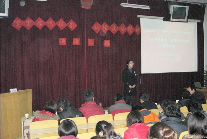 为切实加强和改进大学生思想政治教育,引导广大青年学生深入学习《六个“为什么”》,并针对当前其思想中存在的各种思想矛盾、热点话题和疑点困惑展开讨论,按照法政学院六个“为什么”大家谈系列活动的计划和安排,12月24日晚,best365“坚定理想信念 弘扬民族精神”演讲比赛在A合九隆重举行。法政学院党总支副书记程曾强老师、团总支书记崔越老师、教学秘书吕刚老师、团总支副书记黄春建老师、09级辅导员许建峰老师、法政学院漆彦忠老师以及团总支、学生会主要学生干部担任了此次比赛的评委。
